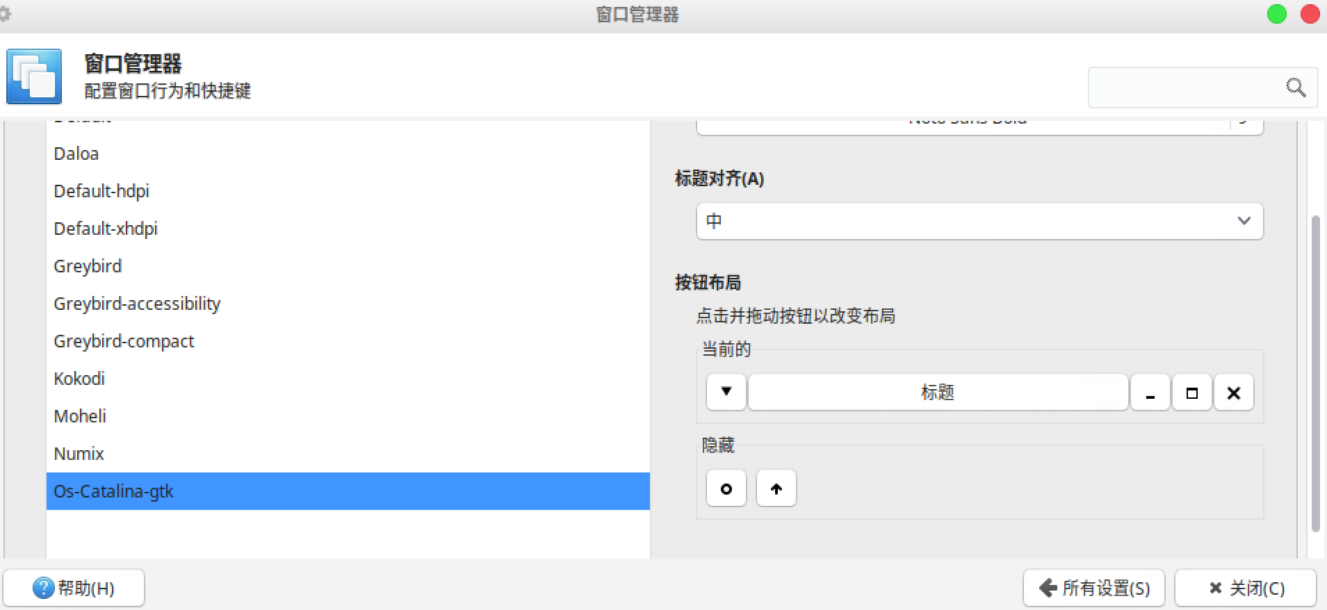 有些主题包是很多样式(包括窗口、图标和外观样式)成套出现的,如果安装的主题包括了 Xfwm4 窗口管理器主题的话,我们会发现在「窗口管理器」首选项中,该主题也会出现: